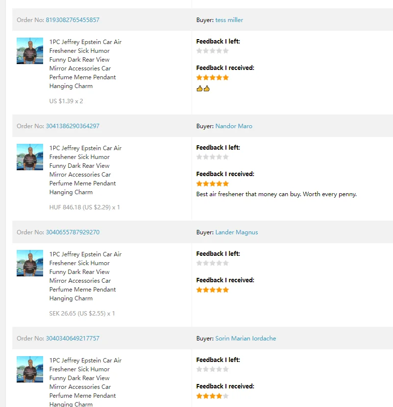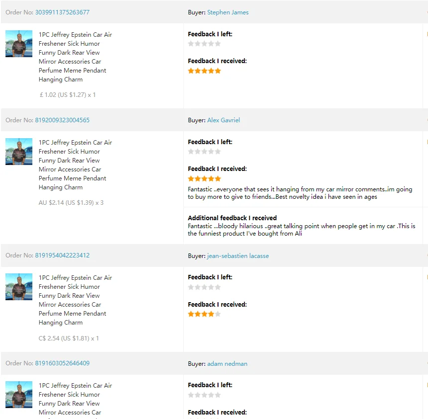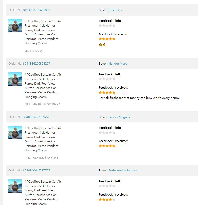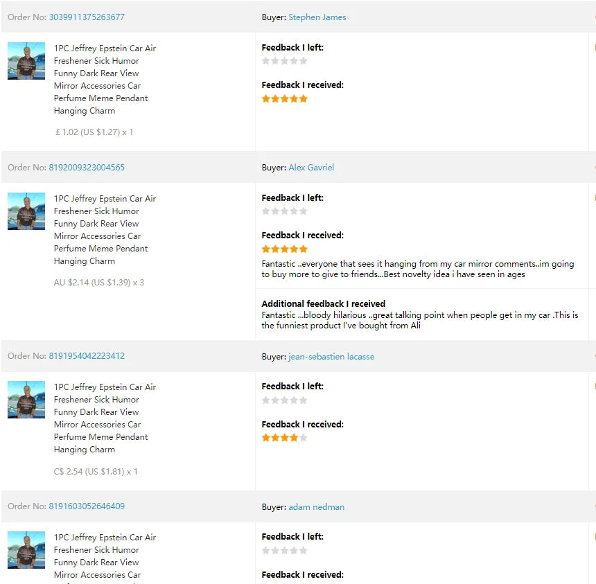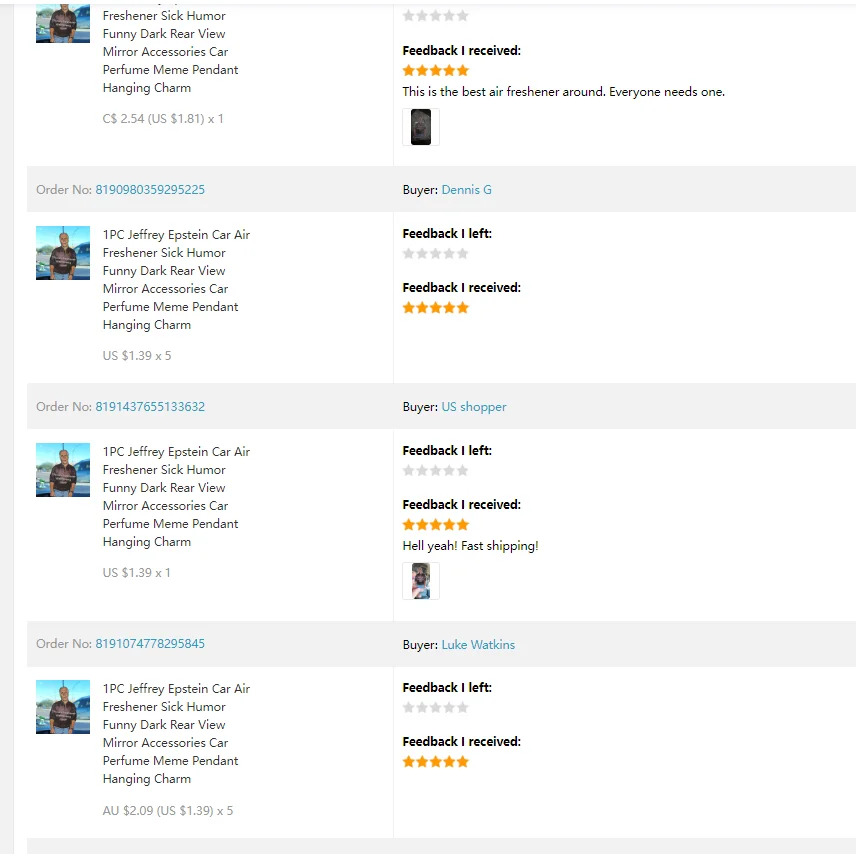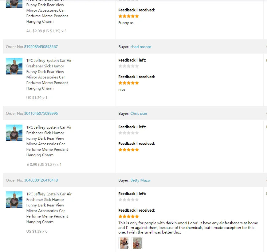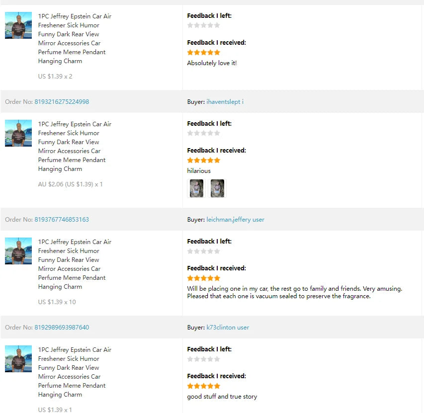 1PC Jeffrey Epstein Car Air Freshener Sick Humor Funny Dark Rear View Mirror Accessories Car Perfume Meme Pendant Hanging Charm