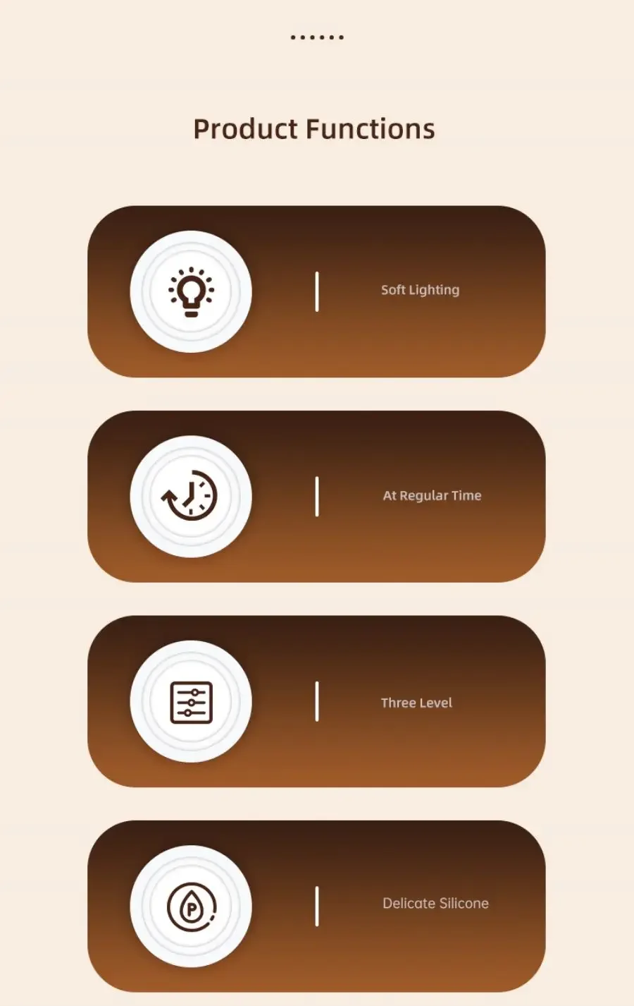 Funtion: 3 brightness levels, 30 minute timing